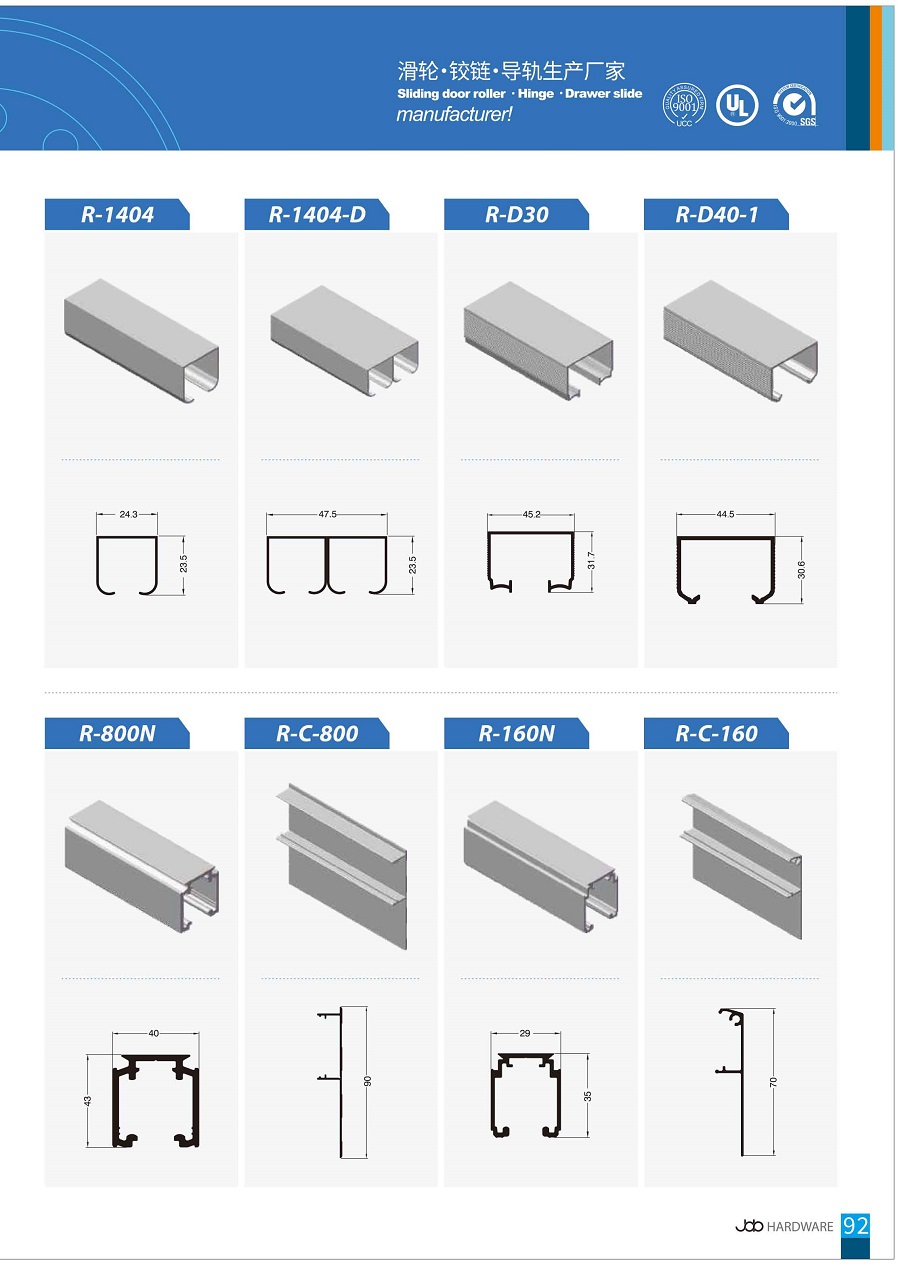 قضبان توجيه بكرات الأبواب المنزلقة من JOB، قضبان علوية مزدوجة، قطاع ألومنيوم لبكرات الأبواب المنزلقة